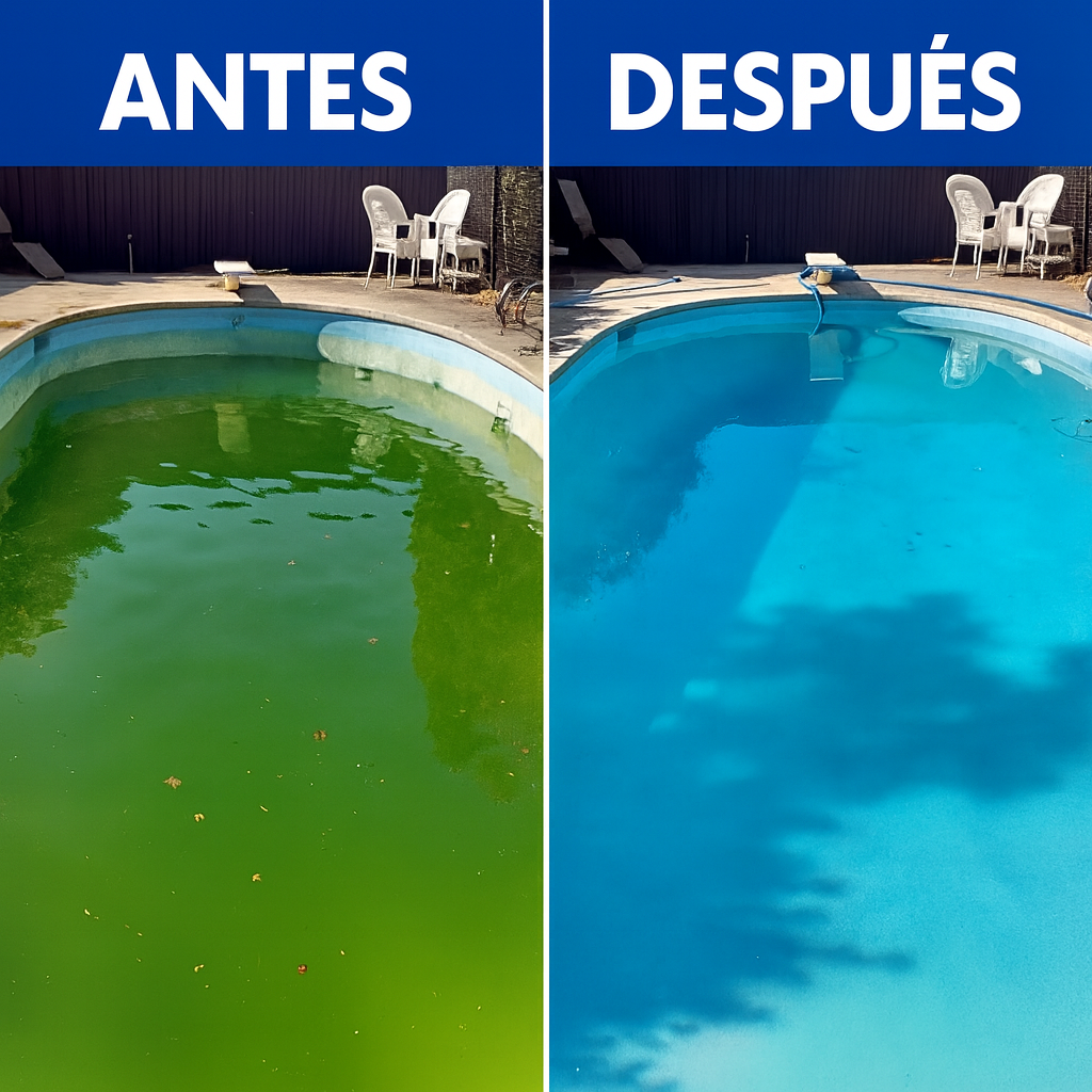 En pocas horas vas a notar cómo el agua se aclara y recupera su brillo natural. En menos de un día la pileta se ve limpia, transparente y sin olor. Es la forma más práctica y rápida de mantener tu agua impecable todo el verano.